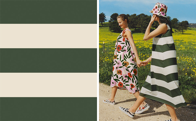 另外还有两款印花图案,分别是日本设计师脇坂克二(Katsuji Wakisaka)设计的小花图案 Demeter(谷物女神),以及 Vuokko Eskolin-Nurmesniemi(沃科克·诺米斯耐米)在上世纪 50 年代为品牌设计的条纹图案 Galleria(画廊)。