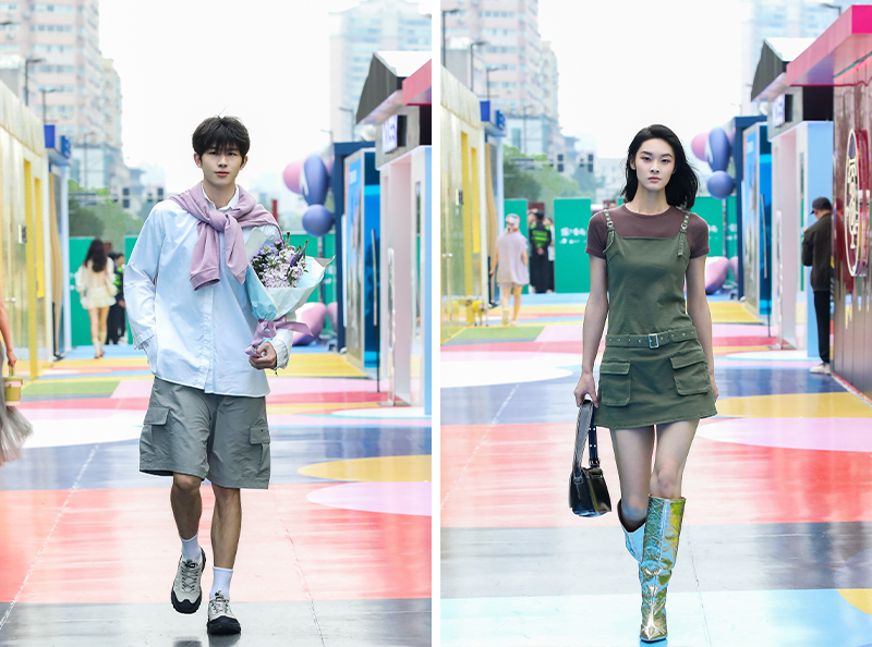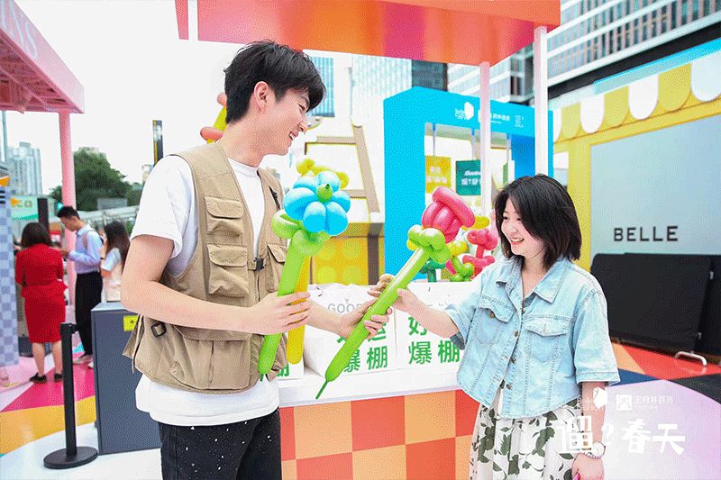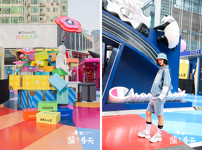 走秀之后,整个快闪街区正式展现在大家面前,这就像是一个春日市集,色彩缤纷明媚,花朵竞相开放,相当热闹。