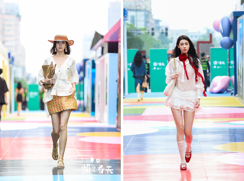 其中在开幕环节,一场“遛?春天”主题爱物鞋服秀在现场上演,这就是在开放的街区办的秀,也因此吸引了不少过往市民驻足观看。到场博主们携自己心爱的物品走秀,也同时演绎了不同风格的春日造型,或甜美,或潮流,或优雅,呼应生活工作不同的场景,也给大家带来了春日搭配的丰富灵感。
