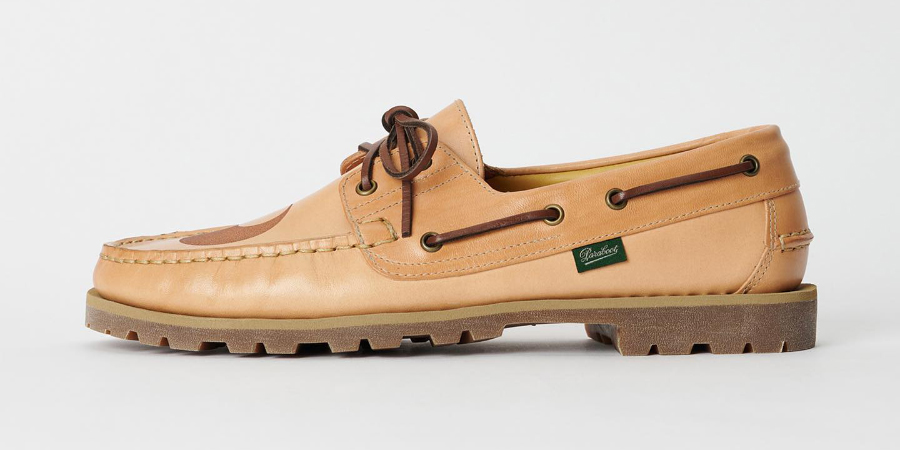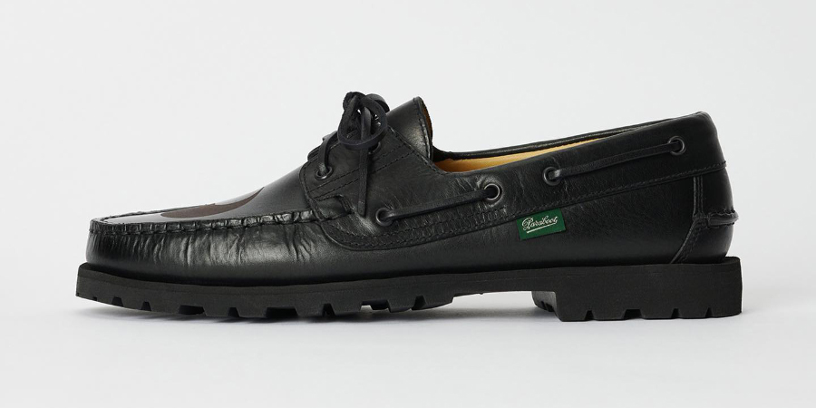 来自丹麦的人气时尚品牌 OUR LEGACY 和 Paraboot 合作带来了联名船鞋。它保留了 Paraboot Malo 型号的经典廓形,以优质小牛皮鞋面搭配橡胶外底,鞋头上有添加代表 OUR LEGACY 的镭射太极 logo。它是在西班牙手工制作的,有提供黑色和原色两款配色。
