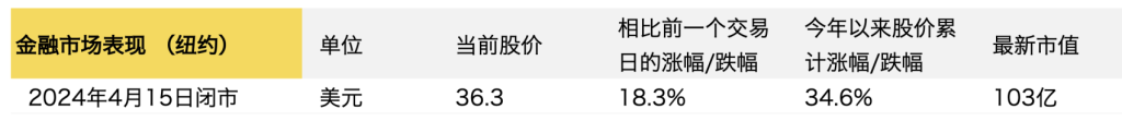 截至5月14日美国股市收盘,On 的股价较前一交易日上涨18.3%,报36.3美元每股,今年以来股价累计上涨34.6%,当前市值约103亿美元。