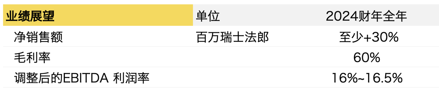 持续强劲的发展势头增强了On品牌实现其2024财年目标的信心。品牌重申了此前宣布的增长预期:预计2024年度净销售额将至少增长30%,按当前汇率计净销售额至少达22.9亿瑞士法郎。此外,品牌还预计2024年全年毛利率将达60%左右,调整后息税折旧摊销前利润(EBITDA)率达16%~16.5%。