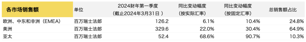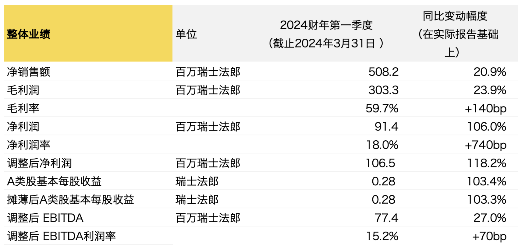 截至2024年3月31日的第一季度,On 关键财务数据如下: