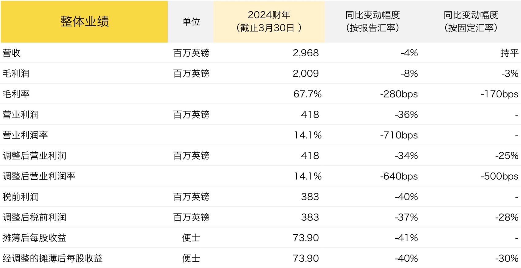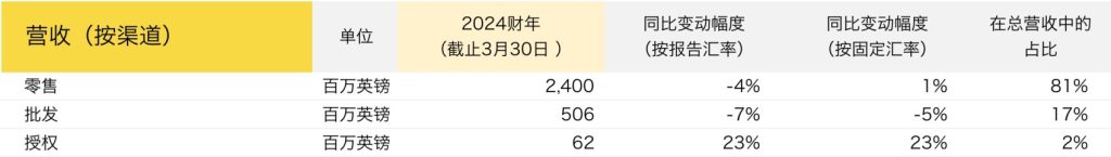 Burberry 2024财年全年基本财务数据: