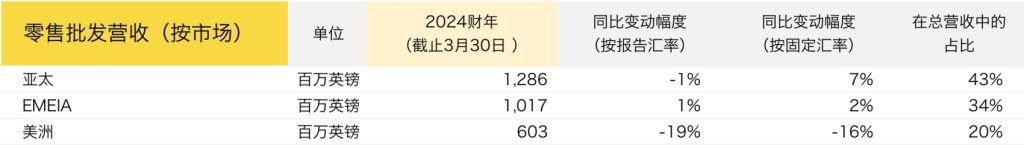 批发渠道业绩的下滑则出于美洲市场的压力。