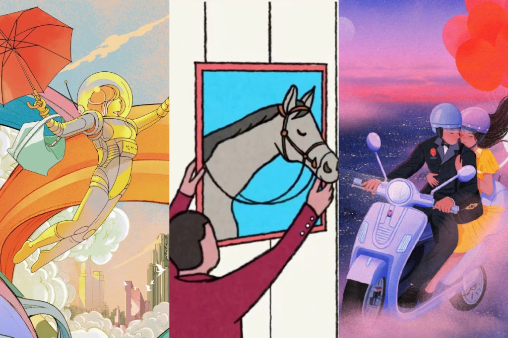 据「华丽智库」的统计,2023年1月1日-12月9日,爱马仕累计发布平面及视频广告90则,其中73则为与各个不同领域艺术家合作,为品牌单品制作的动画短片或平面插画。可以说,动画或插画,已经成为爱马仕在众多奢侈品牌中,独树一帜的视觉传播的特色——本次520也不例外。