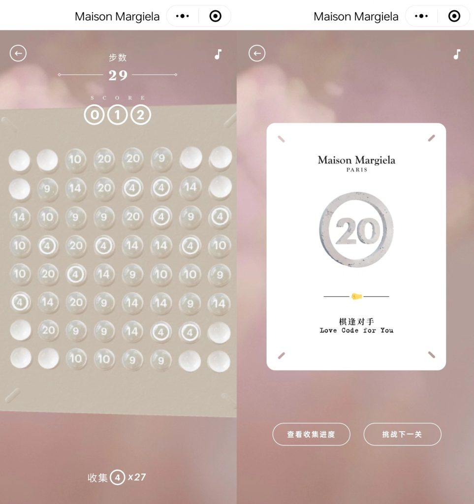 这是一次颇具新意的营销实践,反映出品牌深谙在地市场文化。游戏化互动增加了趣味性和互动性,让消费者感受到品牌的创意精神。值得注意的是,马吉拉品牌一贯用带圈的0-23数字指代品牌各个产品线,本次游戏也巧妙融入了这一品牌特色元素,与品牌调性十分契合,使品牌信息的传递更加有趣。