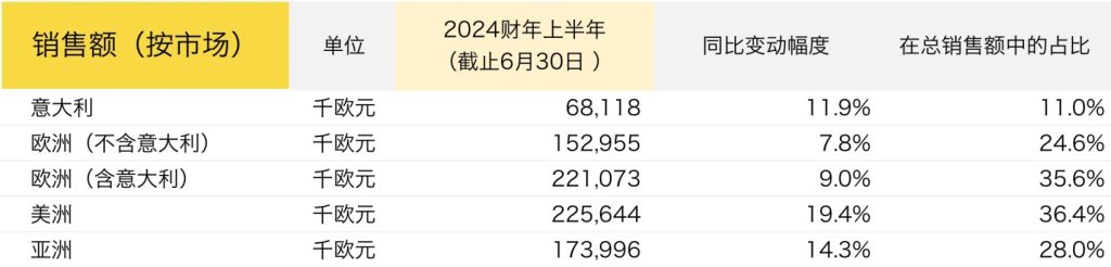 所有地理区域都取得了非常积极的表现,美洲市场销售额增长19.4%,欧洲市场增长9.0%,亚洲市场增长14.3%。公司强调:“(上半年的业绩)很好地证实了中国市场的增长趋势,从一个时期到下一个时期,中国逐渐成为我们品牌非常有潜力的重要市场。”
