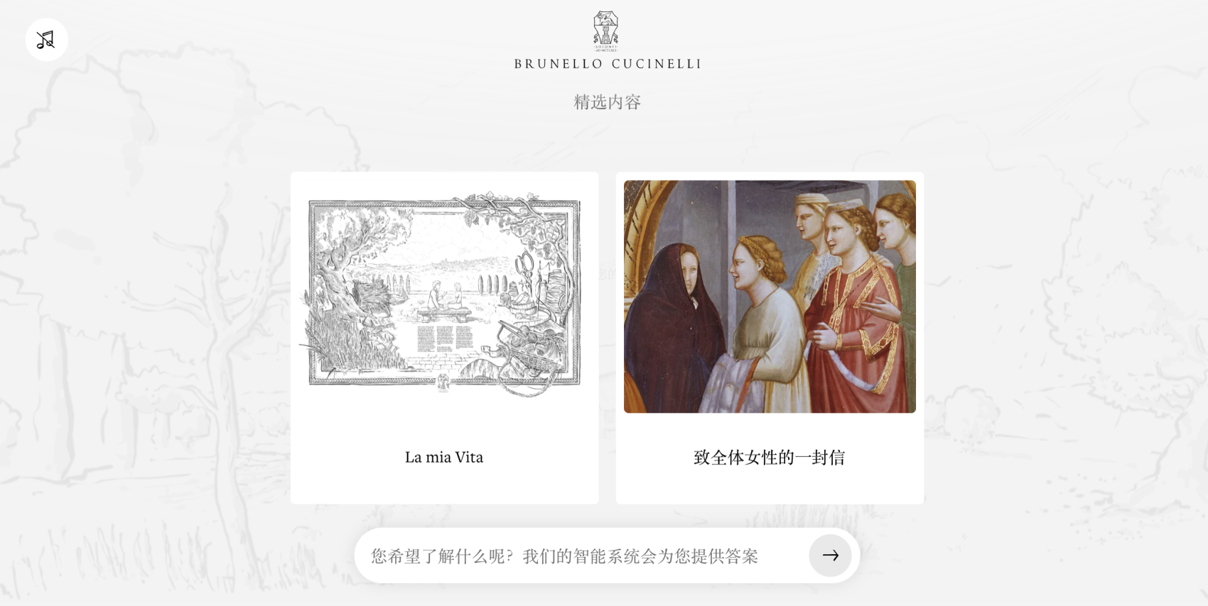 意大利奢侈品牌 Brunello Cucinelli 的同名创始人Brunello Cucinelli 先生在米兰皮科洛剧院发布了品牌官方网站的全新AI项目 BrunelloCucinelli.AI(https://www.brunellocucinelli.ai/)。
