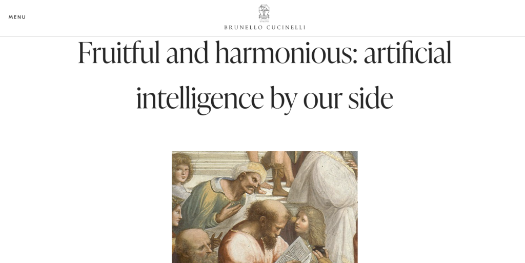Brunello Cucinelli 早已关注人工智能领域,早在去年11月28日,Brunello Cucinelli 本人就借助人工智能技术撰写了一篇名为《Fruitful and harmonious: artificial intelligence by our side》(硕果累累、和谐共存:人工智能在我们身边)的文章。文章提到,近一年来,许多人一直在试验生成式人工智能工具,试图寻找这一技术在私人生活和工作中最合适的用途,并表示“‘平衡就是一切’……如果我们知道如何以应有的平衡使用人工智能,我们将获得难以想象的好处,但我们不应过度使用。”