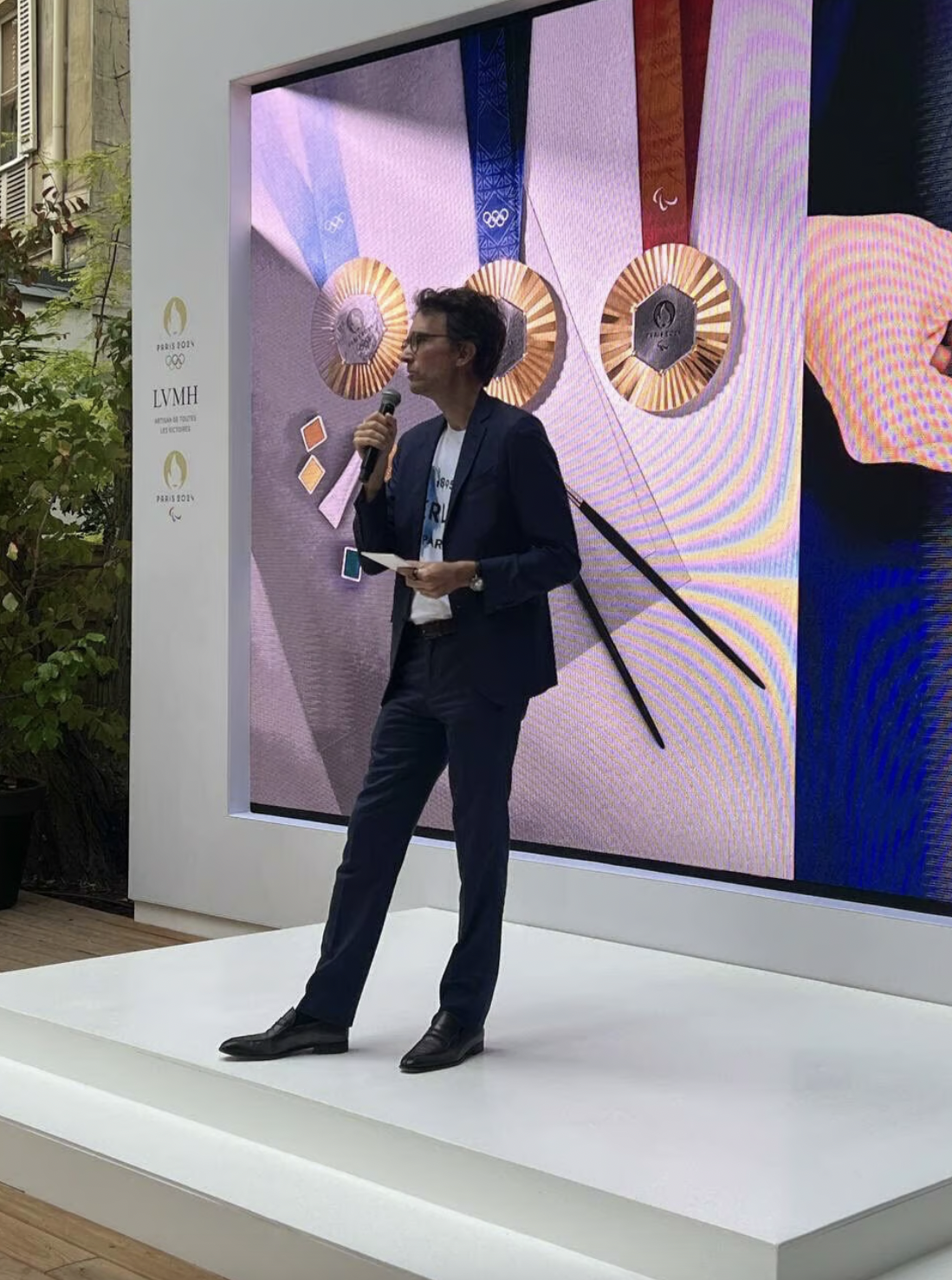 在开幕仪式上,Antoine 身穿蓝色西装和 Berluti 1895 T恤表示:“这将是法国有史以来组织的最盛大的活动。当全世界的目光都聚焦在巴黎时,La Maison LVMH将成为一个我们欢迎运动员、艺术家、客户、集团好友和媒体的会面场所。”