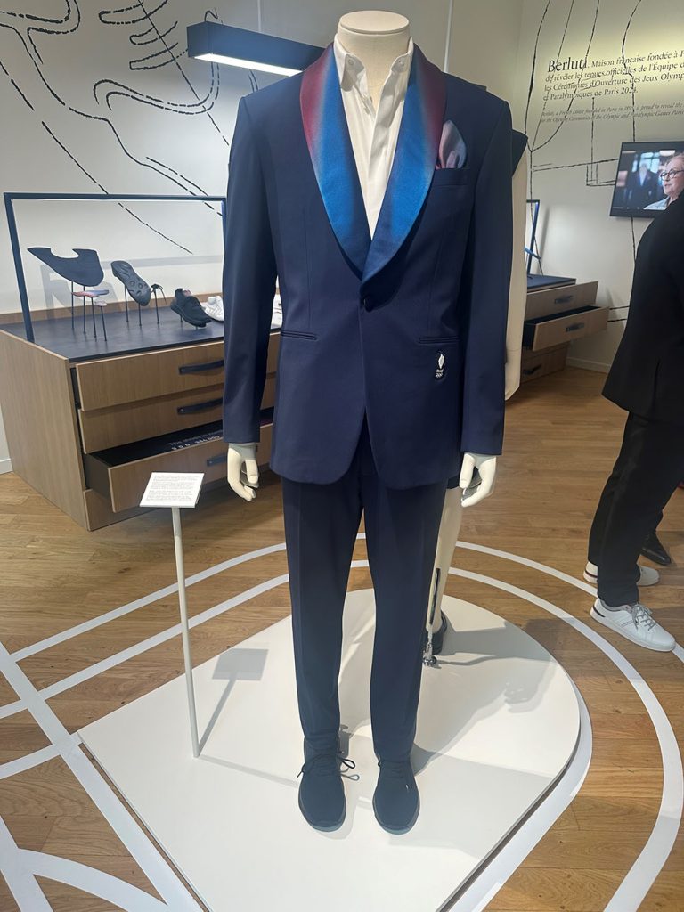 LVMH 展馆内展出了为法国运动员开幕式设计的 Berluti 西装