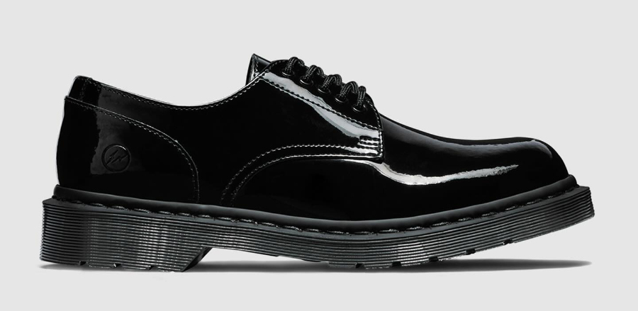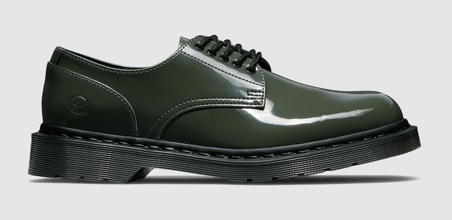 近日 fragment design 和 Dr.Martens 再次携手,双方复刻了 2019 年推出的德比鞋。它以 Dr.Martens 经典的 1461 为原型,并将 1461 的 3 孔改成了 5 孔,此外搭配了漆皮鞋面,后跟还有闪电 logo 加持。 这次除了黑色款,还有新亮相的橄榄绿和白色款,它们已经在 8 月 2 日正式发售。