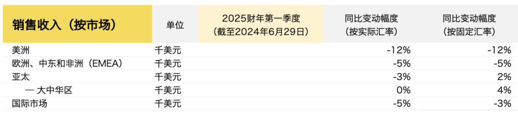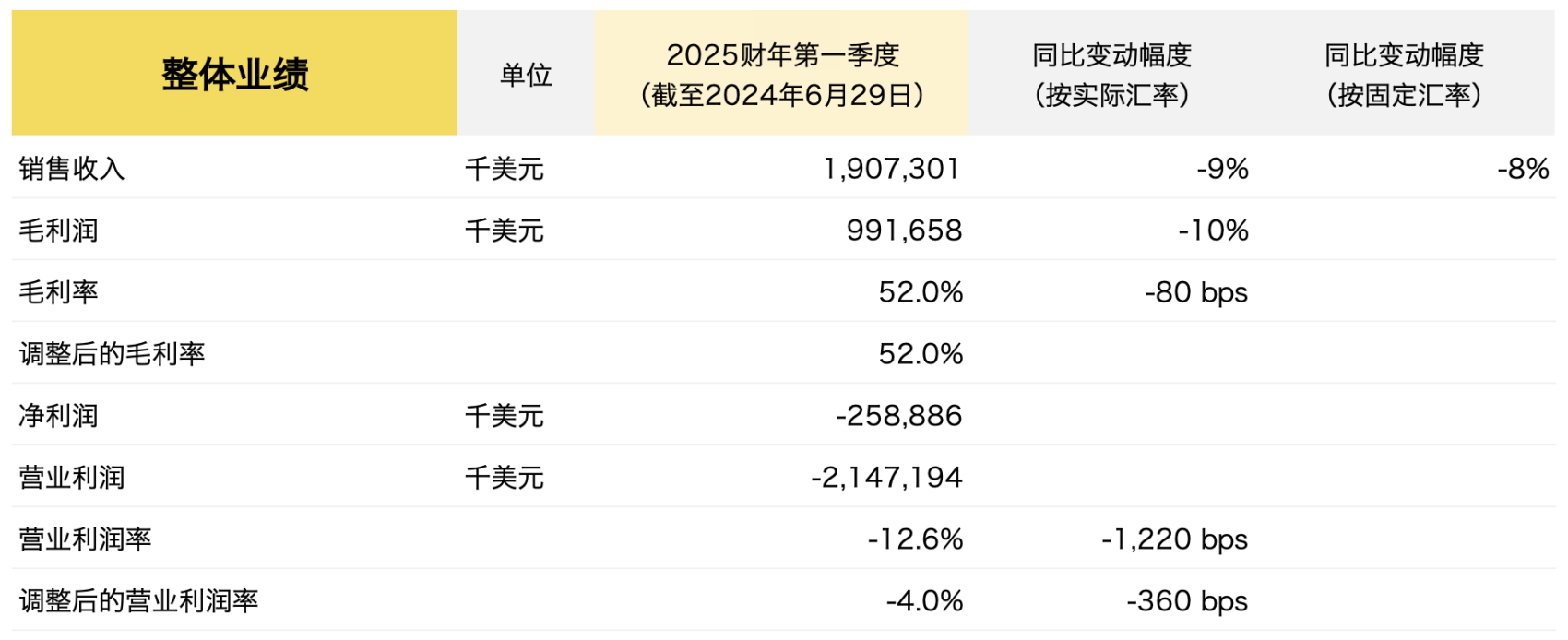 截至6月29日,VF集团2025财年第一季度主要财务数据如下: