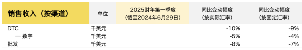 美东时间8月6日收盘后,The North Face、Vans、Timberland、Supreme 等户外和潮流品牌的母公司、美国服饰巨头 VF Corporation(威富集团,以下简称“VF 集团”,纽约证券交易所股票代码:VFC)公布了截至2024年6月29日的2025财年第一季度关键财务数据:销售收入同比下降9%至19.1亿美元(按固定汇率计算:-8%);营业亏损和净亏损进一步扩大,分别为2.40亿美元和2.59亿美元(2024财年第一季度分别为900万美元及5743万美元)。