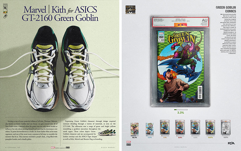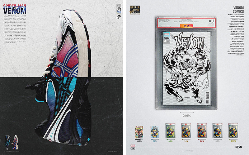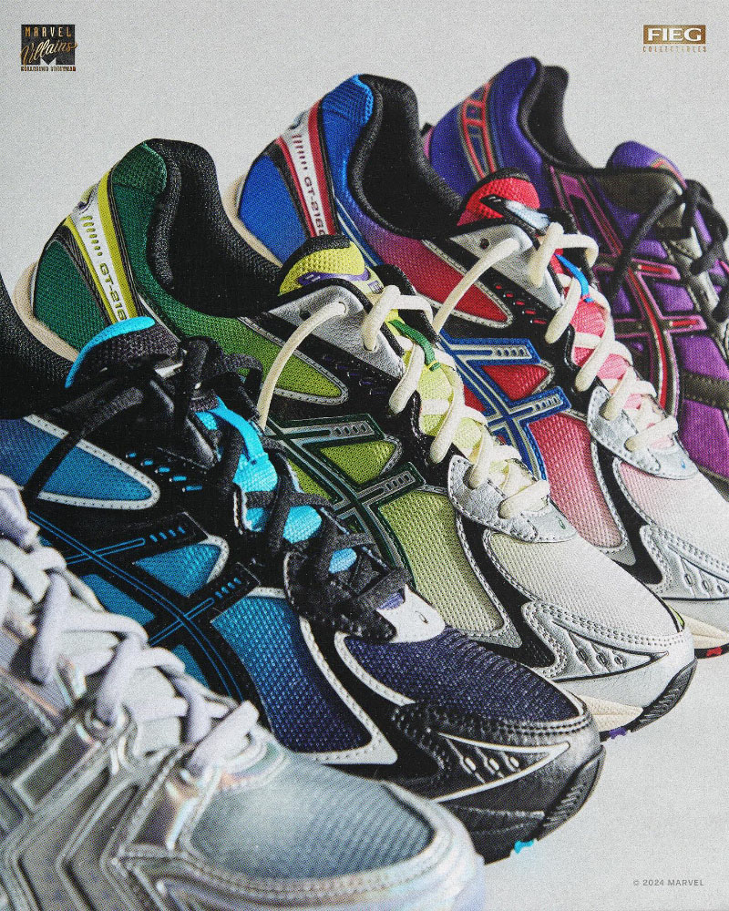 KITH 发布了和漫威、ASICS 合作的三方联名系列,这是为庆祝漫威诞生 85 周年打造的,设计上是以漫威的多位超级反派为灵感。 系列有五款鞋,其中 GT-2160 有两个配色,分别是“蜘蛛侠 vs 毒液”和绿魔主题,GEL-KAYANO 14 是银影侠主题,GEL-1130 则是万磁王主题。 随鞋还有附赠独家漫画,漫画有常规版和不同稀缺程度的多个版本,并会以盲盒形式呈现。系列目前已经正式发售。