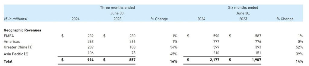 大中华区营收同比大涨54%至2.89亿美元,在所有主要市场中表现最佳,亚太(除大中华区)同比增长45%至1.06亿美元,此外,EMEA(欧洲、中东和非洲)及美洲均同比增长1%。