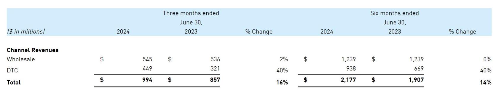 户外性能部门中 Salomon 品牌的软商品(soft goods)业务保持两位数营收增长,尤其是鞋类产品表现优异。该部门调整后的营业利润率为-2.1%。此外,截至2024年6月30日,该部门直营门店为162家,较2023年6月底增加49家。
