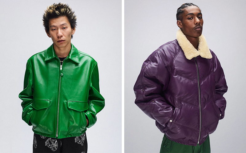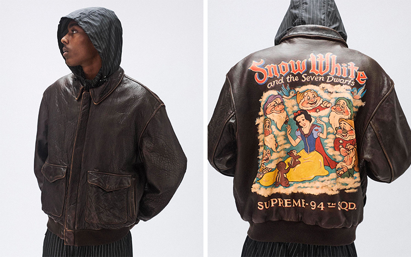 新一季风格和品类上的变化不大,秋冬的外套产品依旧是一个重点。和纹身艺术家 Mister Cartoon 合作的刺绣皮夹克、和老朋友 Schott 合作的白雪公主印花 A2 皮夹克,以及人造皮草连帽夹克、皮草印花 GORE-TEX 羽绒大衣、仿鳄鱼纹工装夹克、和 B.B. Simon 饰钉工装夹克等风格华丽的单品都是本季亮点。