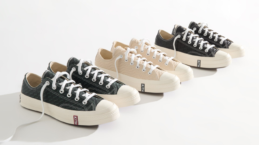 KITH 发布了 2024 秋冬系列,其中包括一组和匡威合作的 Chuck Taylor All Star 70 Ox。 鞋款廓形上没有明显变化,皮革鞋面饰有 KITH 的 monogram 图案(3 个配色是 3 种不同图案),中底有 KITH logo 加持,此外内衬也是皮革材质,并搭配有定制鞋垫。 整个系列在视觉上还是非常高级,它们目前已经正式发售。