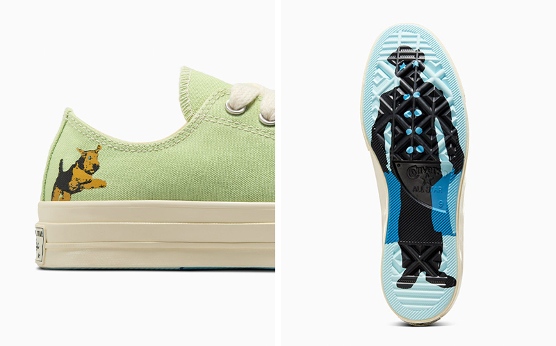 最近还有匡威和 Tyler, The Creator 合作的新系列值得关注。9 月 26 日,匡威和 GOLF le FLEUR* 的全新联名正式发售,这次系列有 5 款低帮 Chuck 70,它们有着明媚的色彩,这也是非常有 GOLF le FLEUR* 特色的色调。
