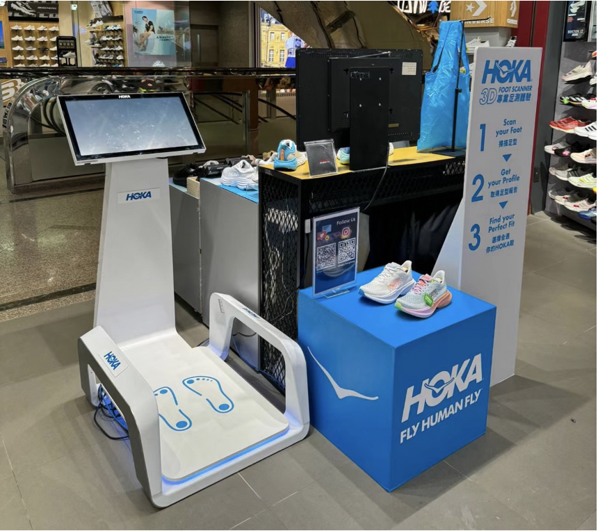 部分门店内设有跑步机体验区,以及HOKA 3D 测足机,帮助消费者全方位了解自己的脚型。每一次开出新店,HOKA都会组织一次城市的社团跑步活动。