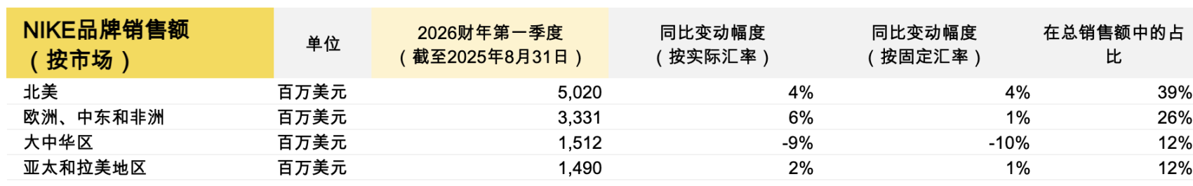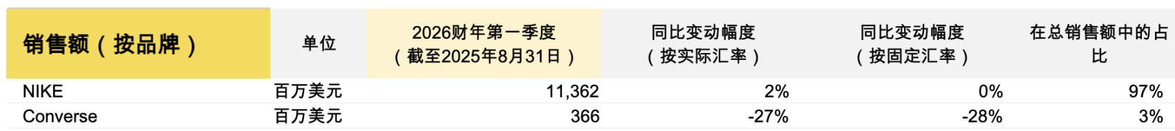 截至8月31日,Nike 2026财年第一季度关键财务数据如下: