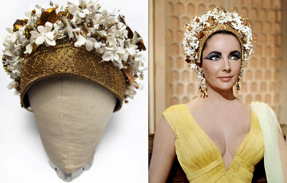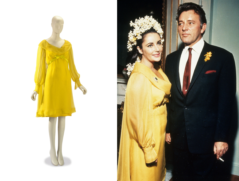 伊丽莎白·泰勒的遗产管理方(The Elizabeth Taylor Estate)从她生前的私人物品中精选了部分上线,包括此前并未公开的私人信件、传奇珠宝、标志性电影服装和其他稀有文物,比如她和理查德·伯顿(Richard Burton)结婚时穿着的、由著名影视服装设计师艾琳·沙拉夫(Irene Sharaff)打造的淡黄色婚纱(下图一),伊丽莎白·泰勒在电影《埃及艳后》(Cleopatra)中穿戴的奢华配饰(下图二),1956年她与詹姆斯·迪恩(James Dean)演对手戏的《巨人传》(Giant)中的道具,以及有着“香水届奥斯卡”之称的 FiFi Awards 的奖杯、一些绘画作品、记录她支持与艾滋病抗争的公益活动的剪贴簿等等。