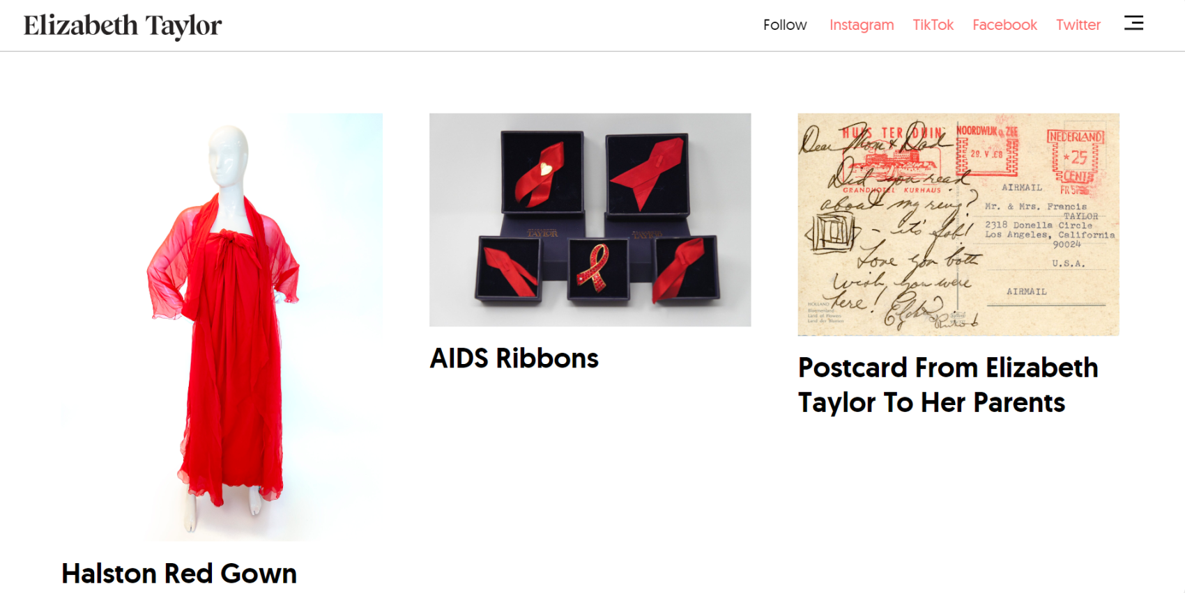 伊丽莎白·泰勒档案馆(The Elizabeth Taylor Archive)成立于2015年,对伊丽莎白·泰勒的遗产进行编目和保存,创建了一个专注于伊丽莎白生活和工作的权威资源。