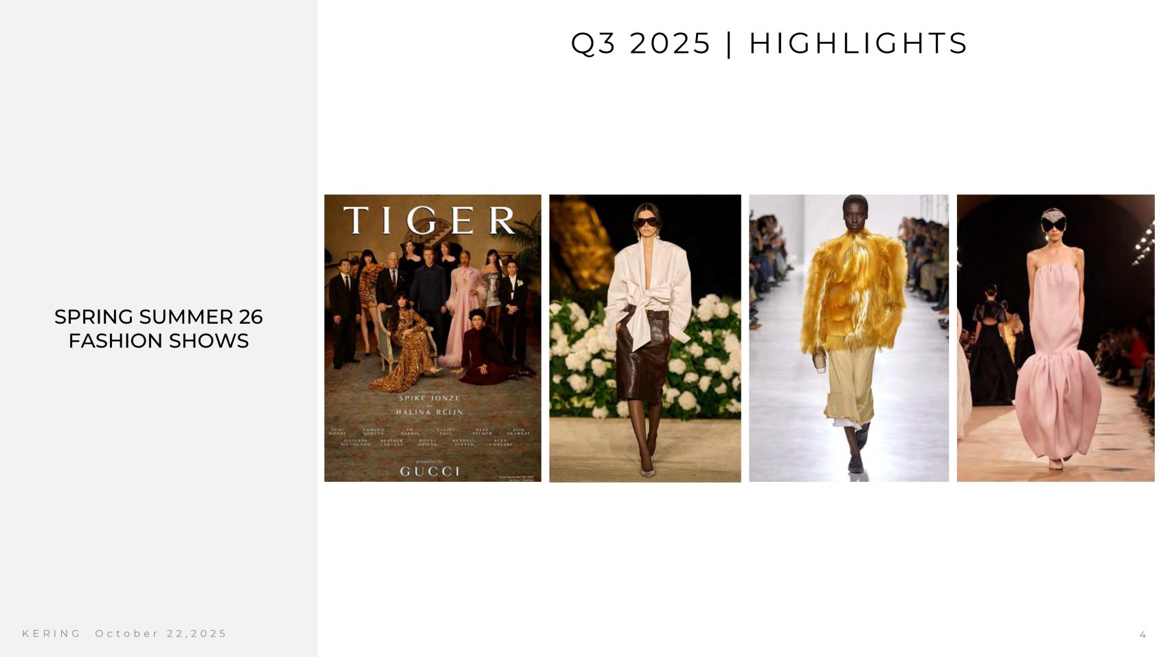 值得注意的是,2025年第二季度,开云集团总营收的同比跌幅曾高达 15%,相比之下,第三季度5%的同比跌幅意味着“显著的连续性改善”(sharp sequential improvement)。集团表示,去年同期有利的比较基数和旗下品牌业绩的进步对这种改善的贡献各占一半。