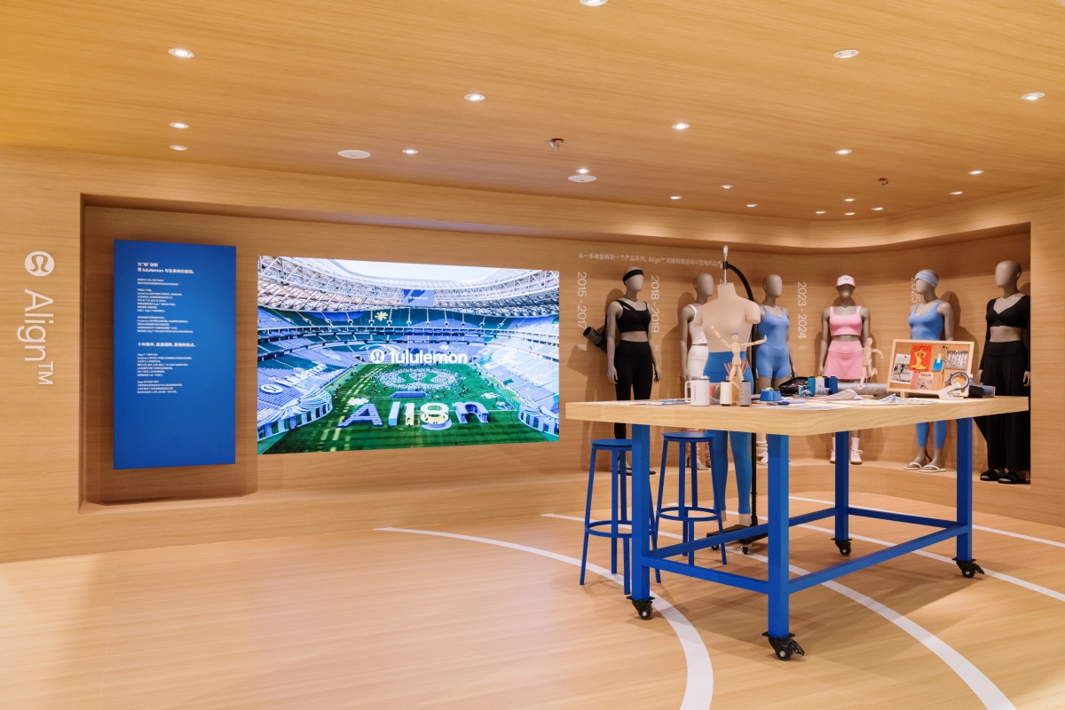 今年也是 lululemon 标志性产品 Align™ 紧身裤问世十周年,展馆中特别复刻了Align™ 系列设计师、研发与产品创新高级总监 Antonia Iamartino 的工作台,呈现 Align™ 从灵感萌生到产品问世的全过程。这一区域内不仅陈列了十年来的标志性单品,涵盖运动内衣、背心、连体衣、裙装、紧身长裤、短裤及阔腿裤等,还记录了 Align™ 系列从瑜伽走向日常的生动历程。
