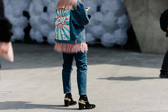 丹宁面料最大的优点是不娇气。贴布、流苏搭配各种袖口磨边,都可以无所顾忌地上街。