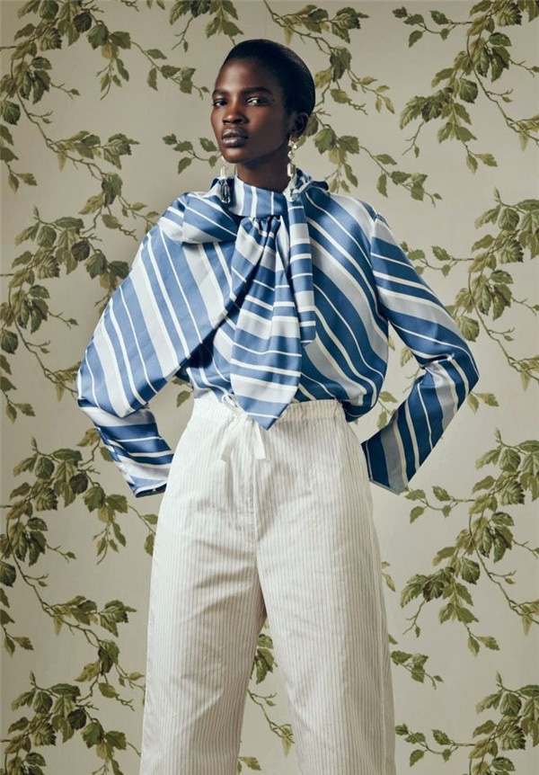 当简约细条纹遇上法式亚麻条纹,复古优雅的家居风呈现了出来,今夏运用在宽松上衣和连衣裙配以传统的蓝白色彩搭配组合。不规则的棉布、真丝、亚麻混纺面料,线缝效果的织花条纹以及提花锦缎阴影花卉,展现漂亮的日常家居风。