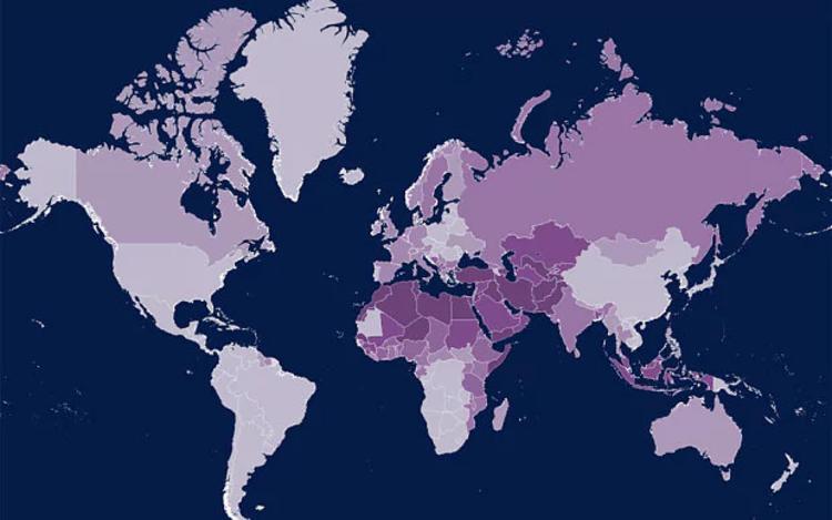 2050年全球穆斯林人口分布,图片来自Telegraph