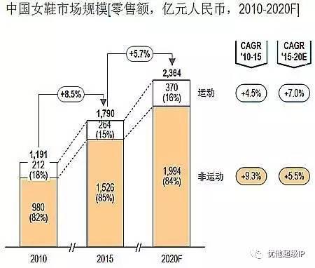 随着人民生活水平的提高、健康意识增强推动运动用品需求量提升,消费者运动日趋专业化带来运动装备的升级需求将带动运动类女鞋加速增长。而在消费升级与低价时尚穿搭品的共同作用下,非运动女鞋的增速将放缓。