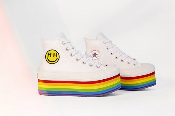 Miley Cyrus早先和Converse推出Blingbling的合作款以后,又趁热打铁为LGBTQ群体发声,和Converse再次合体,推出了70年代Disco复古风格的限量系列,以代表同志群体的彩虹颜色为设计主题。