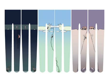 看!圣诞老人正在你的腿上攀爬!这款在众筹网站 CAMPFIRE 上出现的打底裤分为三种卡通人物样式,分别为圣诞老人、杰克与豌豆以及爬山,由深受女子喜爱的插画家 eimi 绘制,幽默风趣,个性独特。