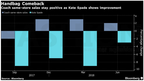 2017年7月完成以24亿美元收购Kate Spade 的交易后,Tapestry Inc. 的业绩一直被惯于利用打折手段促进销售的该品牌拖累。Tapestry Inc. 对Kate Spade 施加成功振兴旗下最大品牌Coach 蔻驰的相同策略,在减少官网闪购和减轻对折扣店依赖的同时,也限制了百货公司的供应以推动正价销售。虽然该品牌在截至6月30日的2018财年四季度同店销售继续同比下滑3%,但跌幅远低于市场预期的7.1%,也比三季度的9%大幅缩窄。
