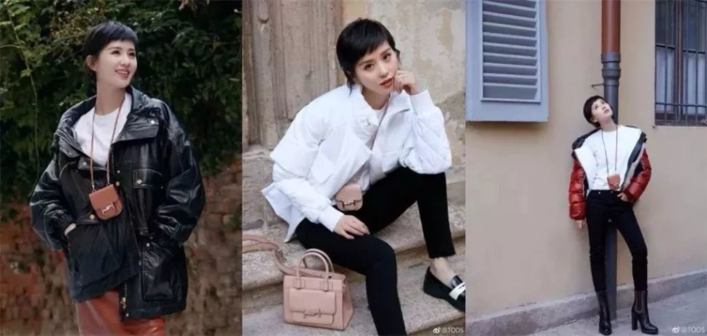 刘诗诗的大片上的挂脖包也是去年Tod’s力推的一个包款,不仅有麂皮、各种不同颜色的皮质款,还有贵气的珍稀皮质款,而作为主打包款,刘诗诗为品牌拍摄的带货大片里也经常看到这只萌圆小巧的挂脖包!
