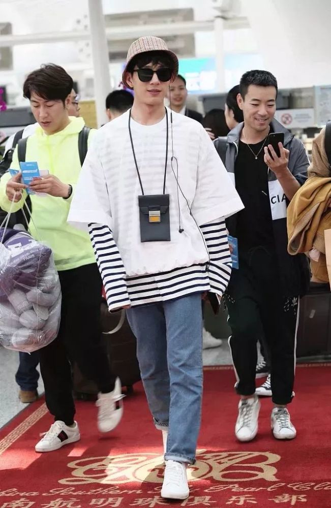 一向走在潮流前线的井宝自然也不会落下最in的时尚单品!挂脖包配上解构式条纹衫,休闲清爽之中透着撩妹的小心机,帅的一批!
