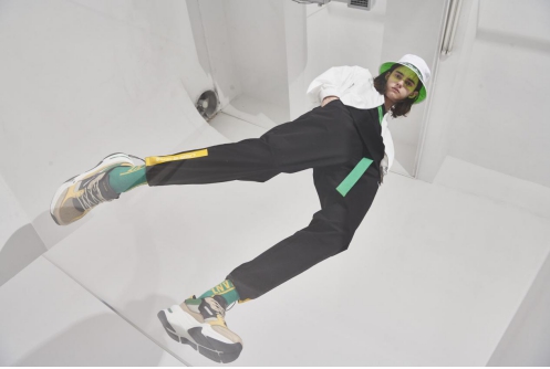 它保留了老爹鞋色彩交错的层次美感,但整体加入了以钻石切割为灵感,棱角分明,犀利有型,无论是街头或是运动,都能轻松把控。